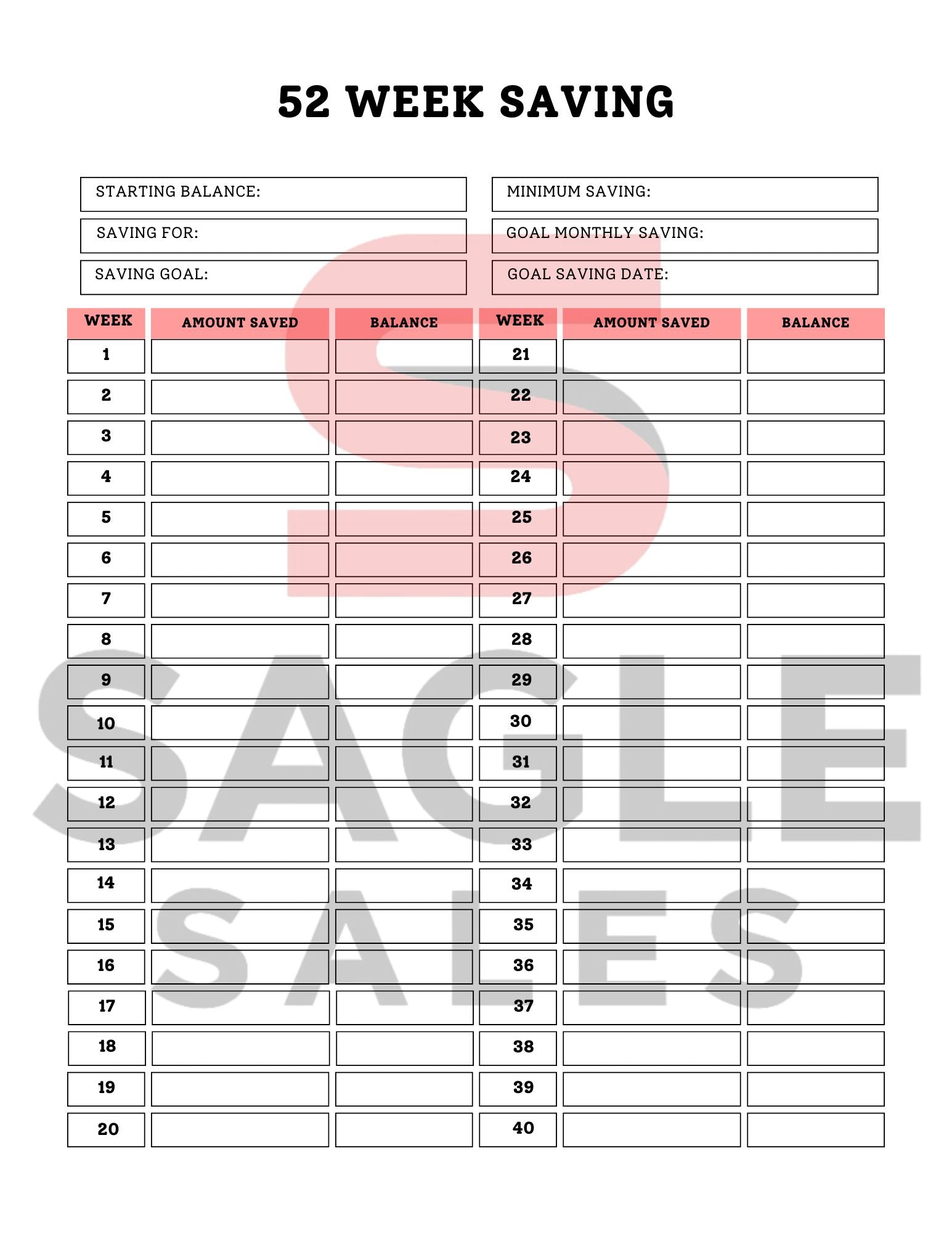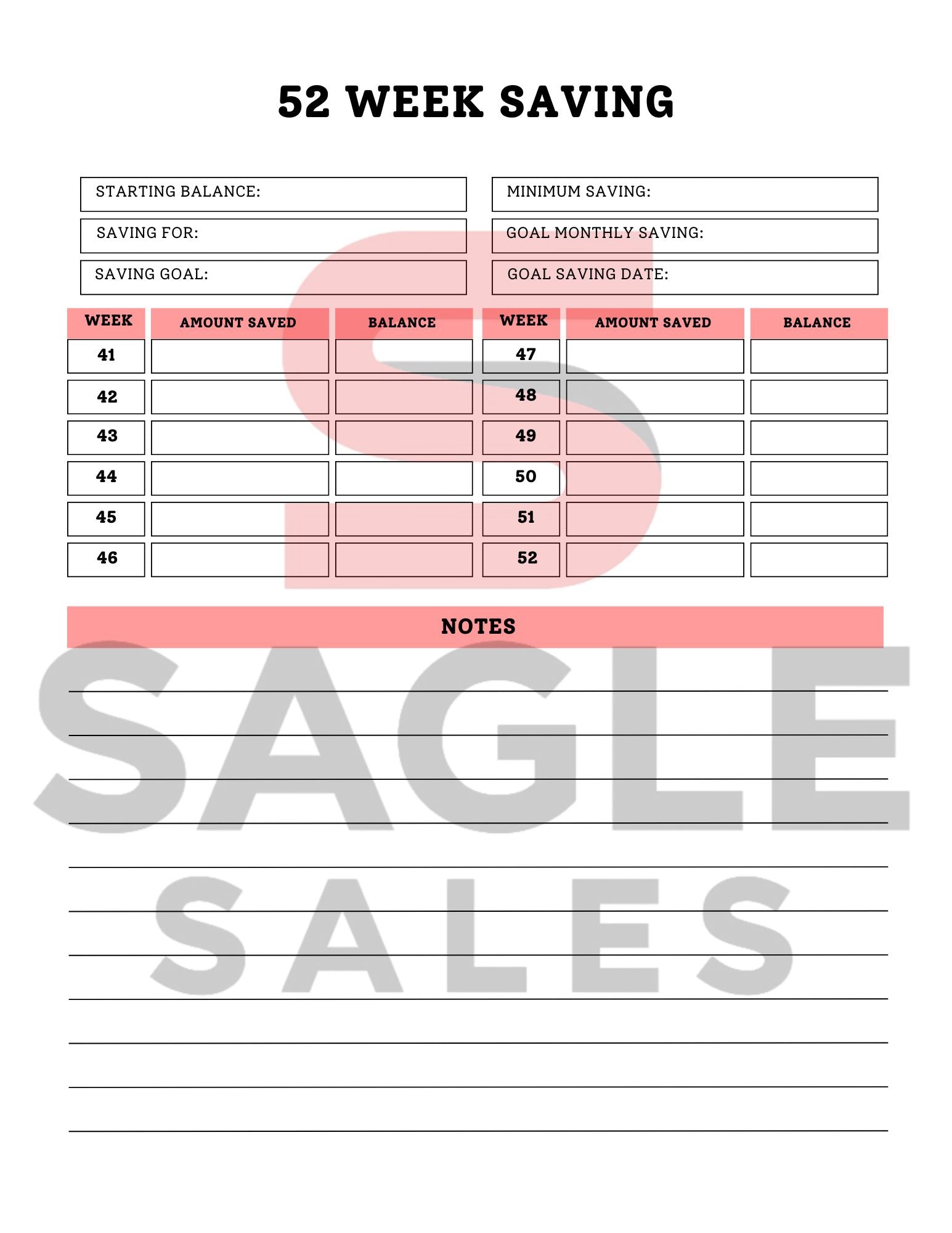 52 Week Saving Tracker β Printable Digital Savings Challenge Planner (Digital Download)